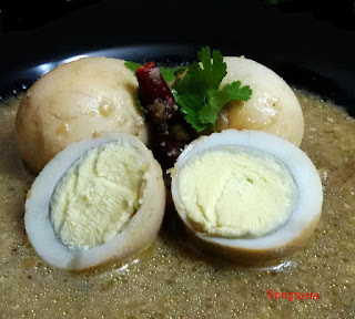 I love experiment...and this time I made this dish with eggs..just wanted to try and it came out so tasty.This Egg Rezala goes well with Paratha, Naan or any other Indian bread and any biriyani.